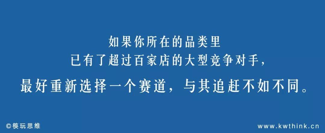 如果你所在的品类里已经有了超过百家店的大型竞争对手,那么最好重新选择一个赛道,与其追赶不如不同。