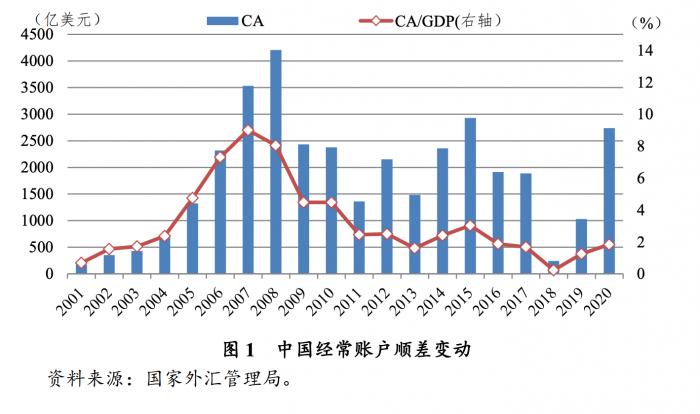报告提到,我国经常账户常年保持顺差,而2018年以来愈演愈烈的中美贸易摩擦和2020年的新冠疫情触发的全球供应链重塑,使得我国的经贸形势发生了快速且复杂的变化,也引发了对我国能否持续保持经常账户顺差的担忧。