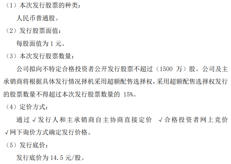 则成电子拟向不特定合格投资者公开发行股票不超过1500万股,每股面值为1元。发行底价为14.5元/股。