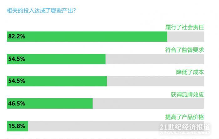 “这里还有一个比较有意思的地方,超过5成企业认为践行可持续发展,会带来成本降低。”熊宜表示,“这意味着践行可持续发展除了带来社会效益外,也能带来经济效益。”