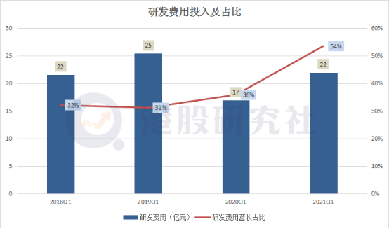 在今年一季度,携程的研发投入为22亿元,同比增长31%,占营收的比重上升到54%,由过去占营收的三至四成,一举过半。