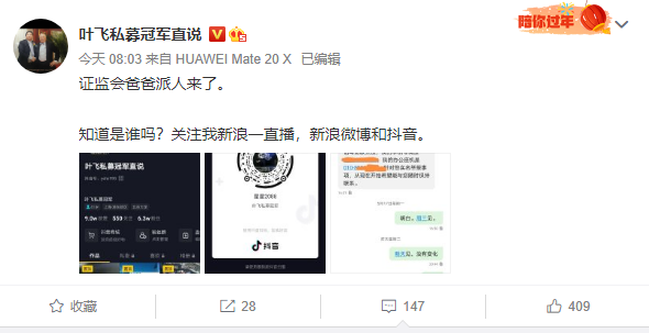 此事依旧存在诸多谜题和未公开线索。当事人叶飞依旧持续更新着微博,曝出的新内容像是一枚枚“重磅炸弹”刺激着二级市场买卖各方的神经。