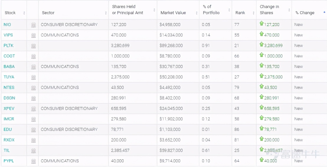 在高位清仓新能源汽车和阿里巴巴后,高瓴资本本季度重新买入了蔚来、小鹏和阿里,京东、哔哩哔哩等涨幅巨大的中概股也被相应减持,好未来和一起教育则被清仓卖出。