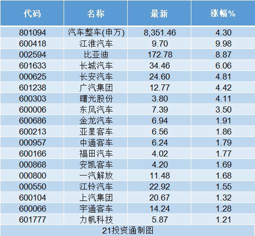 截至收盘,江淮汽车、比亚迪、长安汽车、广汽集团等纷纷走高。