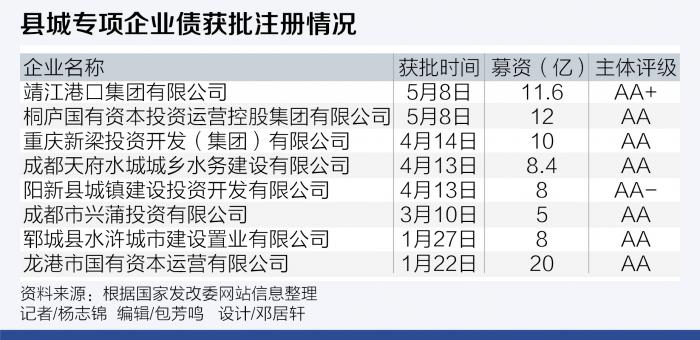 今年1月,龙港市国有资本运营有限公司(下称龙港国资)县城专项企业债获批注册,序幕由此拉开。截至5月19日,共有8家县城投企业获批注册发行县城专项企业债,获批融资额度合计83亿。