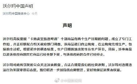 此前,“沃尔玛进口啤酒篡改日期”事件引发热议 ,最新动态来了!