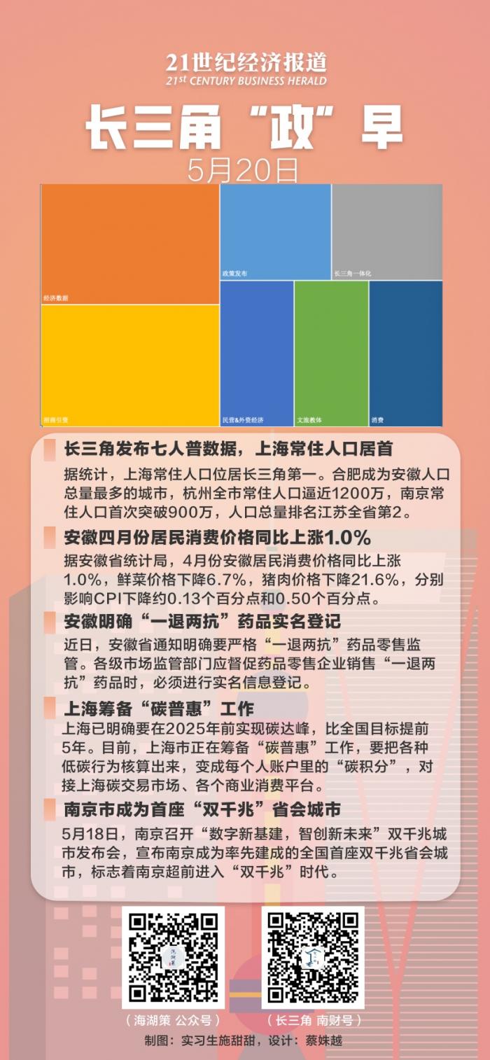长三角七人普数据,上海常住人口位居第一