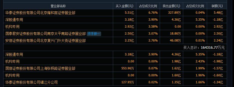 最新龙虎榜数据显示,深股通净卖出1.18亿,2家机构分别卖出1.98亿和1.60亿,买入的有1家机构和1位游资。