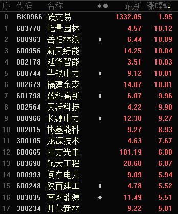 此外,碳交易板块延续了昨日的强势。主要是由于碳交易三大结算规则出台,以“每吨二氧化碳当量价格”为计价单位,买卖申报量的最小变动计量为1吨二氧化碳当量,申报价格的最小变动计量为0.01元人民币。这意味这碳市场建设进入了冲刺的阶段。消息刺激下,市场资金重新流回前期的强势个股比如华银电力、长源电力等。