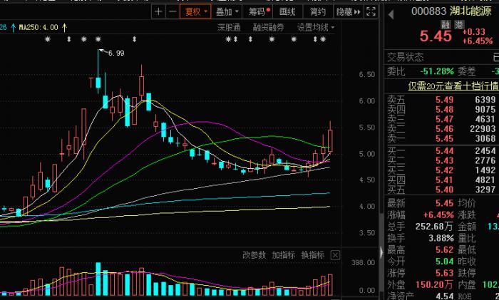 【风向研报】5月20日盘中关注的白酒概念股口子窖(603589)、碳交易概念股湖北能源(000883),连续上涨,今日均冲击涨停。其中湖北能源2天最高涨幅11.95%。