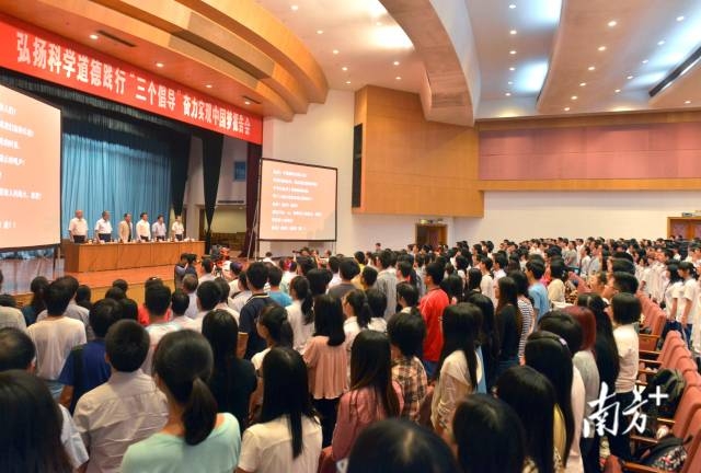 2013年 9月27日,“弘扬科学道德践行‹三个倡导›奋力实现中国梦”报告会在广州举行。袁隆平,徐芑南、钱永刚分别作报告。南方日报记者 王辉 摄