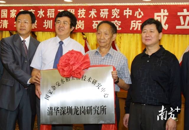 2004年4月20日,国家杂交水稻工程技术研究中心清华深圳龙岗研究所举行签字、挂牌仪式,“杂交水稻之父”袁隆平出席。南方日报记者 张涛 摄