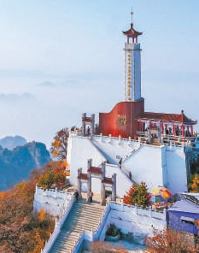 5月,河北易县狼牙山满目苍翠。主峰棋盘陀上建有狼牙山五勇士纪念塔,塔西的小莲花峰,便是昔日五壮士跳崖的地方。洁白的纪念塔矗立山巅,在蓝天白云映衬下庄严肃穆。