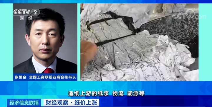 全国工商联纸业商会秘书长张慎金:主要原因是造纸上游的纸浆、物流、能源等价格全球性的上涨,直接增加了企业的生产成本。第二个这次上涨是在之前较低的基础上上涨的,尤其是白卡纸,现在上涨幅度比较大。