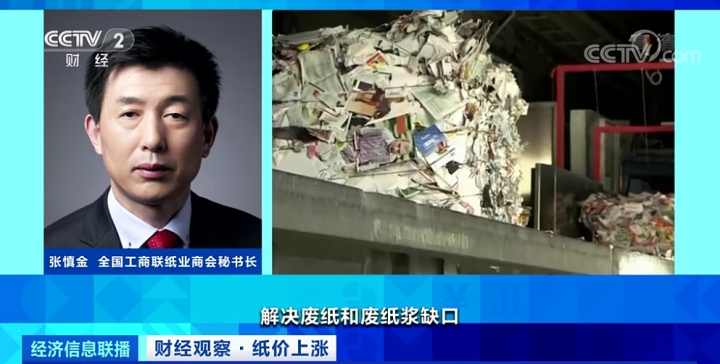 全国工商联纸业商会秘书长张慎金:解决废纸和废纸浆缺口和紧张的方法,是提高海外废纸浆的生产能力,鼓励中国企业在海外建设废纸浆加工厂。