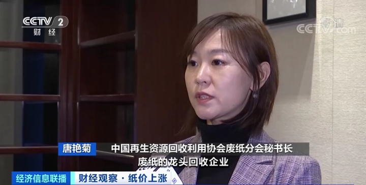 中国再生资源回收利用协会废纸分会秘书长唐艳菊:就促使区域的这些具体的龙头回收企业,发挥它的规模优势,去稳定现在的末端生产企业的原料和市场的价格,国内废纸的质量、回收量也会有大幅提升。