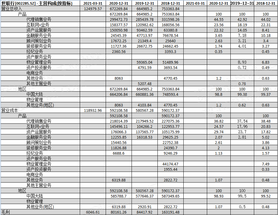 (1) 世联行[002285.SZ]是中国最具规模的房地产顾问公司之一,是境内首家登陆A股的房地产综合服务提供商。经过多年的发展,公司已成为全国性的房地产服务提供商,拥有66家分支机构,业务已覆盖全国30多个省、市、自治区,布局达164个城市,为超2万个楼盘提供专业的营销代理及顾问咨询服务。公司从成立初期的专业估价、咨询已经拓展至交易、金融、资产运营等多项业务为一体的房地产全生命周期服务,公司以“服务、入口、开放、平台”为原则,“让更多人享受真正的地产服务”为宗旨,确立泛交易、类金融、大资管、互联网与数据服务四大核心业务板块,在保持传统业务高速增长的同时,积极布局房地产金融及存量市场,以全国领先的房地产综合服务提供商身份,继续领跑市场。
