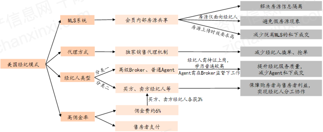 根据从业执照要求高低,美国经纪人分为Broker与Agent,主要差别为Broker可创办公司与独立签订契约,Agent须在Broker监督下工作,Agent根据服务对象不同主要包括买方代理、卖方代理,分别代表购房者、售房者共同参与到一笔交易中。
