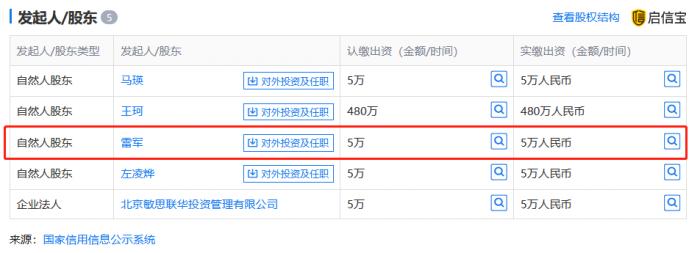 启信宝显示,北京口袋时尚科技有限公司法定代表人、大股东为王珂,该公司股东还包括雷军等人。公司网站介绍称,微店创立于2011年5月,2014年1月“微店”APP正式上线,如今微店平台拥有近9000万小微店主。