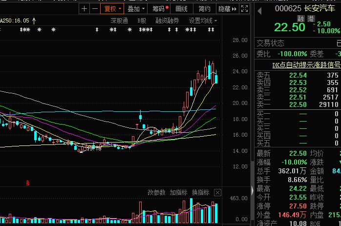 在A股汽车行业板块里面,长安汽车的市值也是超过了1,200亿元,仅次于宁德时代,比亚迪,长城汽车,上汽集团等少数几家上市公司,也是行业的龙头之一,不过今天同样是跌停了。