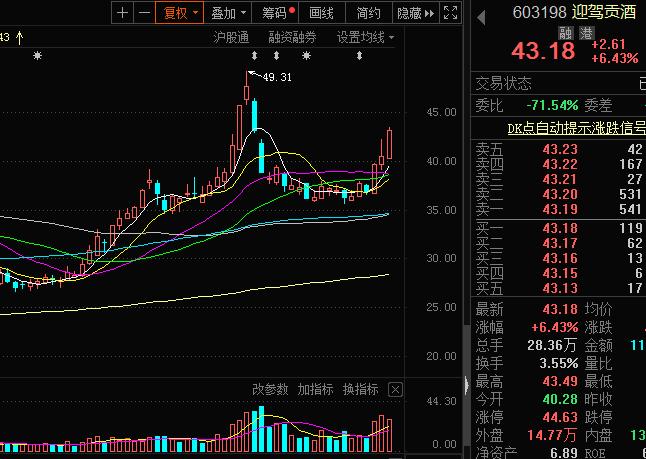 【风向研报】5月21日盘中关注的白酒概念股,迎驾贡酒(603198),大涨超6%。2天最高涨幅7.25%。