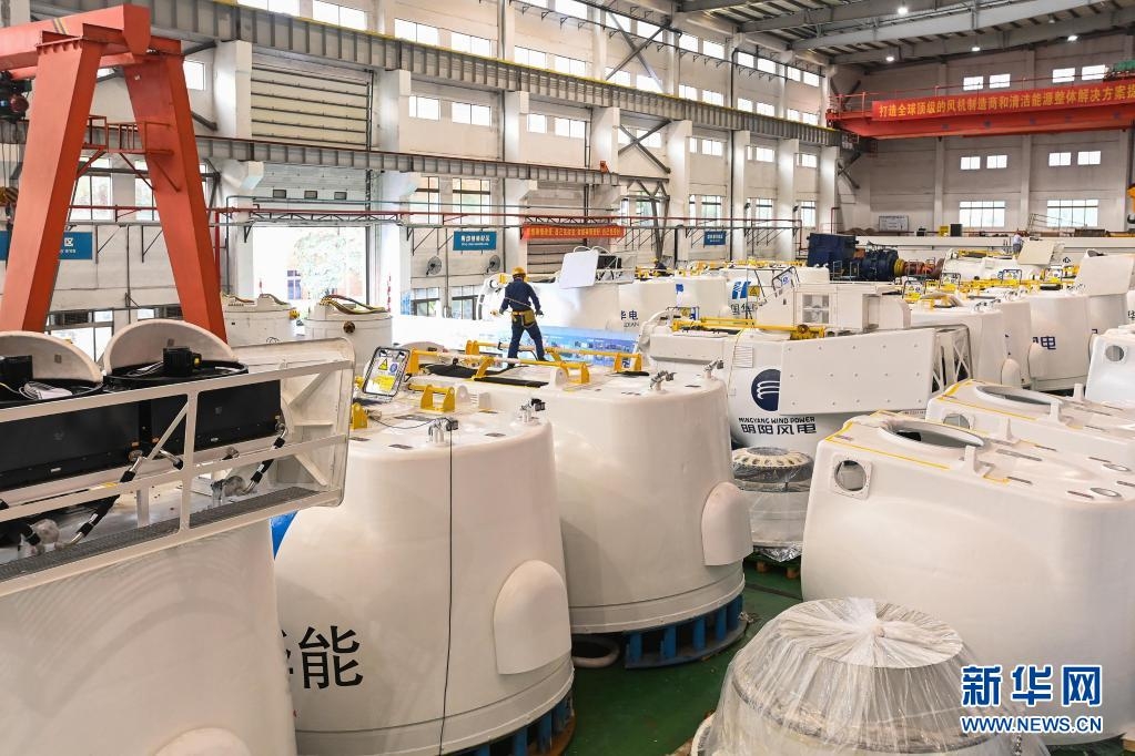 广东明阳风电产业集团有限公司的风电主机生产线(2020年11月17日摄)。新华社记者 刘大伟 摄
