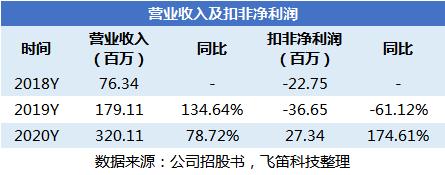 公司在招股书中对近年来营收及扣非净利润的情况进行了披露。数据显示,欧林生物在2020年共实现了营业收入3.20亿元,同比增长了78.72%,扣非净利润为2734万,同比增长174.61%,从数据来看,公司在2020年营收及扣非净利润实现较高的增速。值得注意的是,报告期内公司的营收规模虽持续扩大,但在2020年才处于盈利的状况。