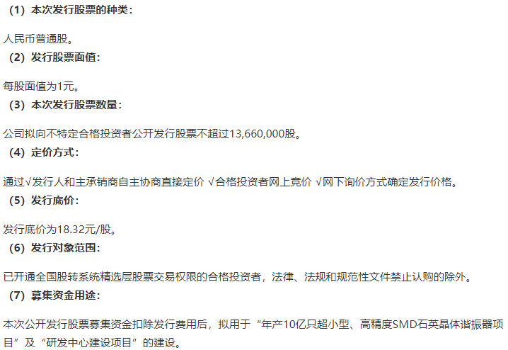 根据披露的发行方案显示,晶赛科技拟向不特定合格投资者公开发行股票不超过1366万股,采用直接定价的方式确定发行价为18.32元/股。