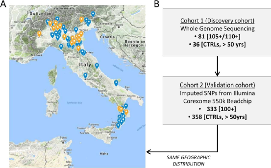 研究人员从所有参与者那里采集了血液样本,并进行了全基因组测序,以寻找年龄较大和年龄较小人群之间的基因差异。随后他们与先前发表的另一项研究遗传数据交叉核对了他们的新结果,该研究总计分析了333名100岁以上的意大利人和358名60岁以上的人。