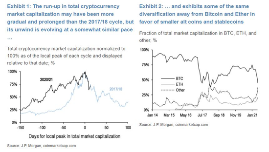 小摩比较加密货币近期与2017年的两次暴跌,认为离场观点不成立