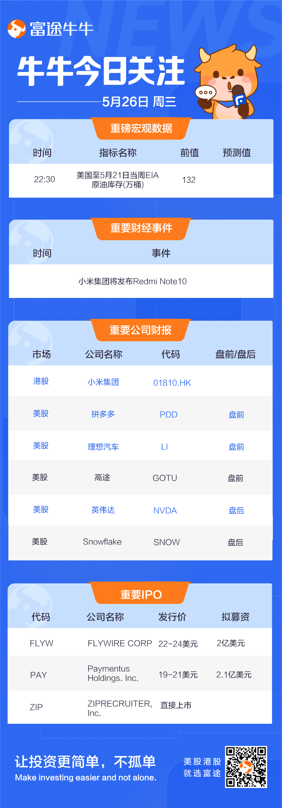 关键词:小米集团/拼多多/理想汽车/高途/英伟达/Snowflake 财报、ZipRecruiter直接上市