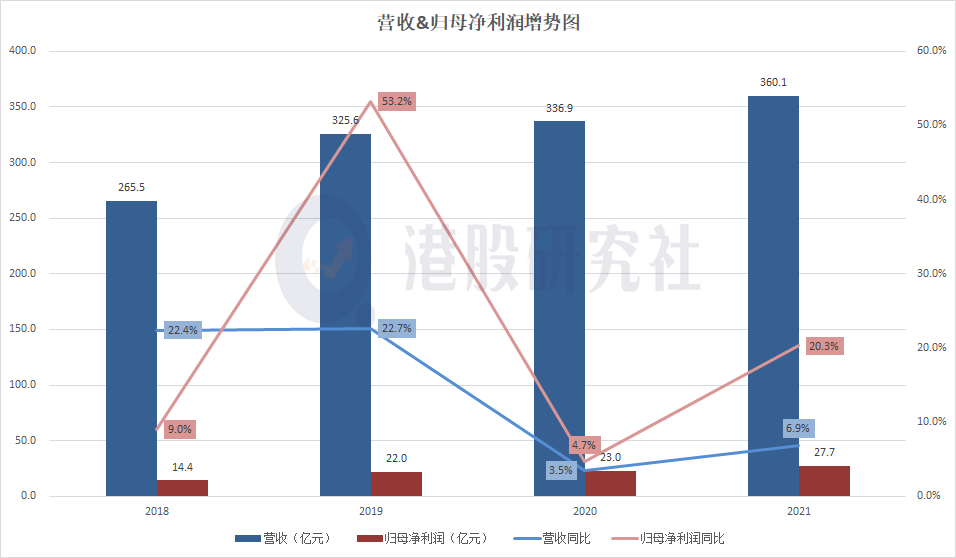 营收作为最主要的数据,在本年度内实现6.9%的增速至360.09亿元,高于去年同期3.5%的增速。