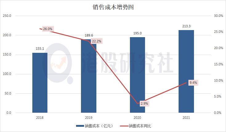 在成本上,财报显示,截止2021年2月28日,滔搏的销售成本同比增长9.4%至213.28亿元,增速远高于去年同期的2.9%。成本增速的提高主要在于去年因为疫情所得到的租金、物业等的减免。
