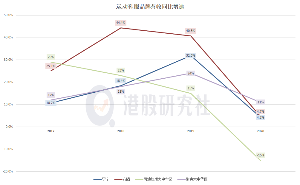 而且近年来,随着民族自信,国货品牌的兴起,国内运动鞋服品牌李宁、安踏等,凭借技术进步和相对优惠的价格,正在逐渐瓜分国内的鞋服市场份额。而国外鞋服品牌,则面临国际政策(比如关税)等不确定因素的严重影响。