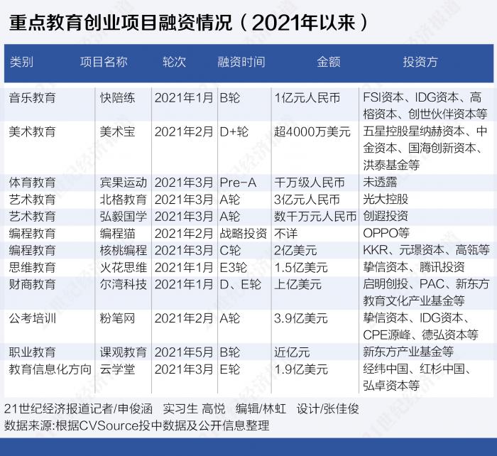 面对监管政策的不确定性,投资机构在教培领域的投资整体趋于冷静,但局部仍有一些热点出现。