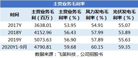 2020年9月,风力发电的毛利率较2019年提升了近3个点,公司在招股书中解释,主要是因为风电项目市场化交易电量占销售电量比重同比下降,拉高了平均上网电价,促使毛利率上升;此外,公司盐城大丰、大连庄河、阳江沙扒海上风电项目于2019年末及2020年初陆续投产,海上风电毛利率较高,进一步拉动风电项目毛利率的上升。