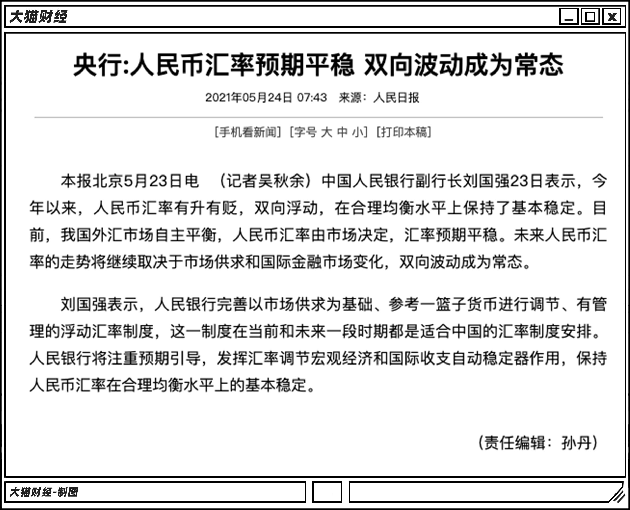 实在没办法了,央妈只能站出来给了颗“定心丸”——别多想了,如今这种双向波动是常态,以后还是会保持人民币汇率在合理均衡水平上的基本稳定。