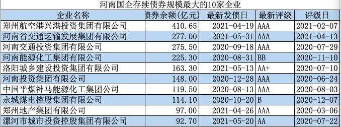Wind数据显示,目前河南省地方国企发债主体一共106家,存续债券规模合计4266.93亿。其中,郑州航空港投资公司存续债券规模最大,为410亿,豫能化及永煤分列第四、第八位。