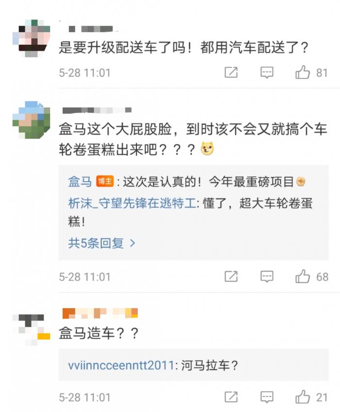 盒马要造车?网友调侃:不会就搞个车轮卷蛋糕吧,官方:认真的,今年最重磅项目