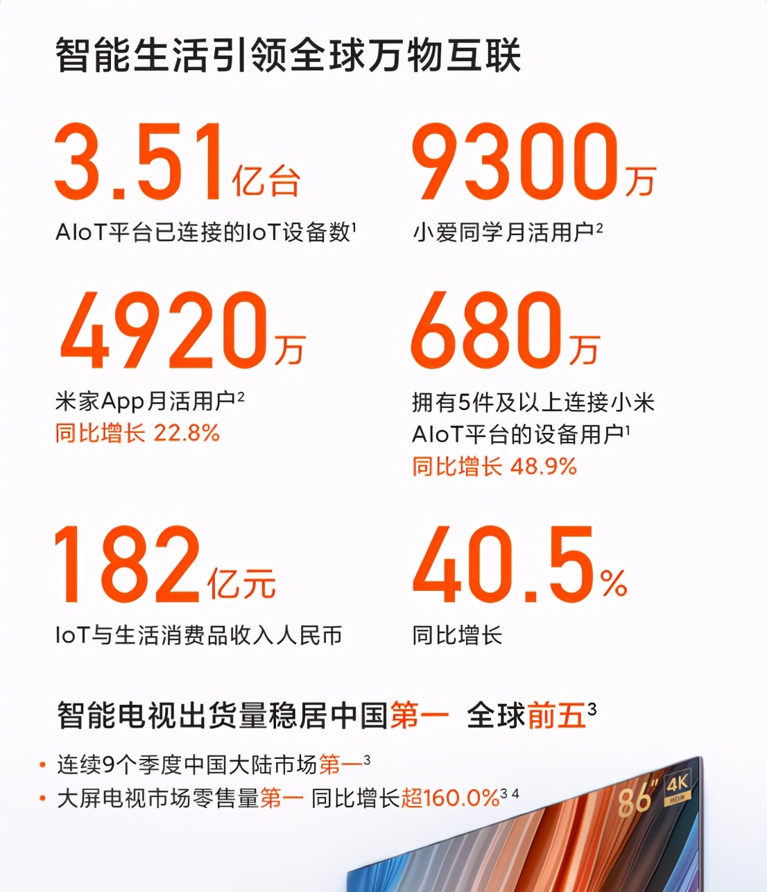 智能手机业务之外,小米的AIOT业务线也是“多点开花”。