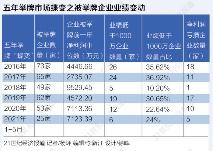 2020年、2021年被举牌企业中,亏损或业绩低于1000万上市公司的占比也明显低于2016年和2017年。