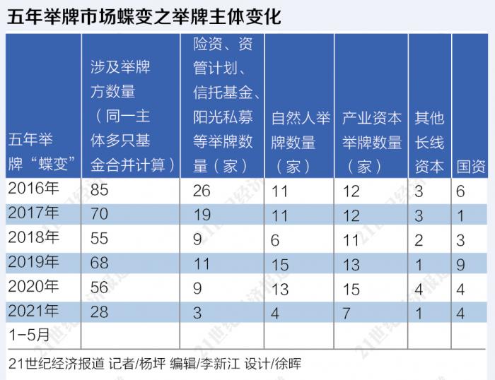其中,2020年以来,险资在A股举牌“江湖”几乎匿迹,阳光私募、信托、资管计划则偶尔见于举牌阵营中,但均否认谋求上市公司控制权。
