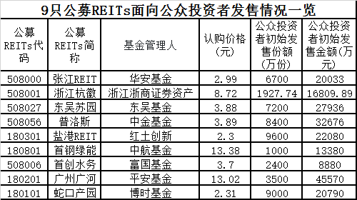 根据认购价格计算,9只公募REITs面向公众投资者的初始发售金额合计大概在20亿元左右,拟募集金额最多的广州广河REITs面向公众投资者的销售金额也不到5个亿。