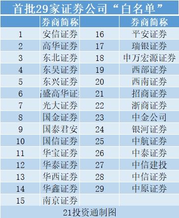 证监会表示,按照“申报即承诺,承诺即有责”的要求,前期证券公司对照“白名单”制度标准向监管部门提出申请,对申报材料真实、准确、完整作出承诺。经证监局初评、会内相关部门复核、行业内公示征求意见,最终确定将首批29家证券公司纳入“白名单”。