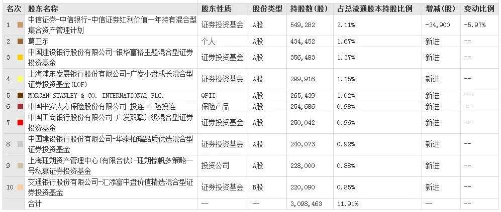另外,还有如中信证券红利价值、摩根士丹利、平安人寿保险、华泰柏瑞品质等四季度的机构股东都有大幅减持。