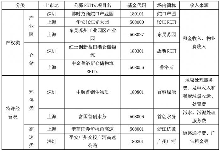 从首批发行的九只基础设施公募 REITs即浙商证券沪杭甬高速、中航首钢生物质、博时招商蛇口产业园、红土创新盐田港仓储物流、华安张江光大园、富国首创水务、中金普洛斯仓储物流、东吴苏州工业园区产业园和平安广州交投广河高速公路来看,均属收入来源为股息和资产增值收益的权益类 REITs 产品。