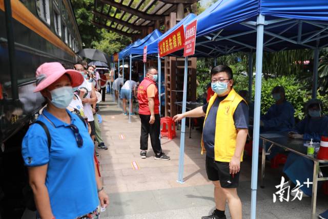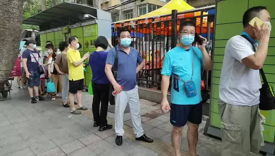 在广东省老干活动中心检测点,居民正在有序排队参与检测。