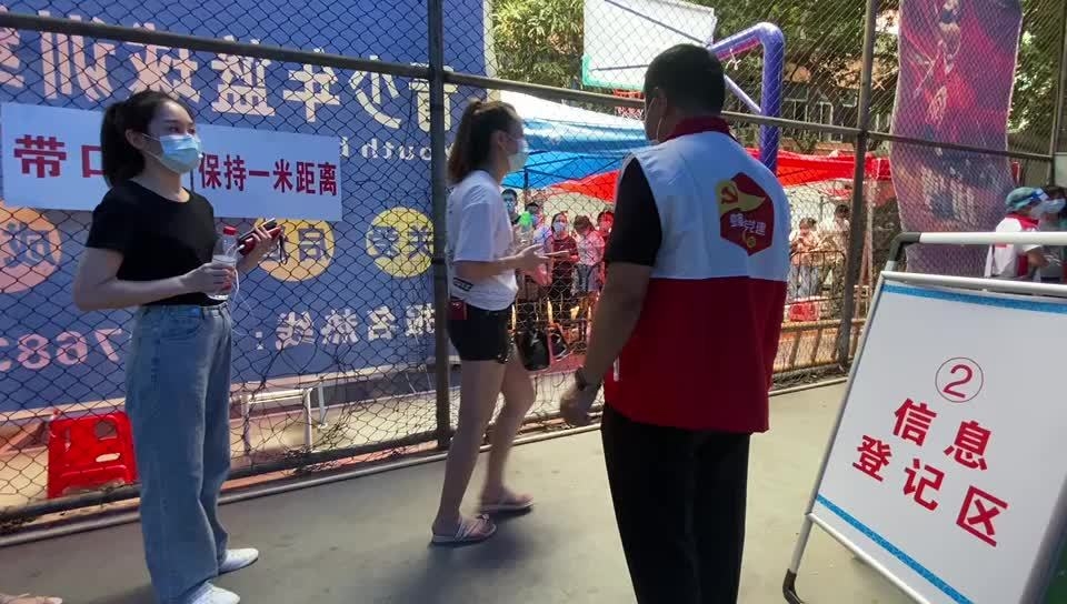据介绍,农林街道省老干检测点预计三天将接待辖内居民5997人。“我们昨天半夜十二点开完会就开始布置检测点了,辖内的机团单位、在职党员、志愿者都积极参与我们的工作。为了给现场的医护人员降温,我们准备了一些风扇,但是没有那么多,大的那种风扇也是我们辖内单位贡献的,包括我们的充电宝,也是餐饮单位听说要布置检测点,自发送过来的。”农林街公共服务办杨艺瑜说,“每一位医护人员旁边坐着的穿蓝色衣服的都是我们的街道志愿者、工作人员,帮助医护人员贴那些试管的标签信息贴纸。”