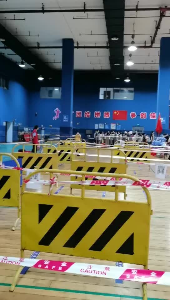 在海珠体育中心的核酸检测点,素社街道的居民在羽毛球馆内排队检测核酸,室内控制在100人左右,整体有序。为了提高效率,等候通道上摆放了一些凳子,提供给有需要的居民。同时,每隔几米就张贴穗康二维码的标识,街坊们科提前完成扫码登记环节,然后直接取试剂盒采样。不会使用手机的老年人也可以凭身份证直接登记。