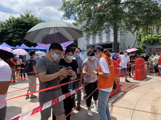 据悉,5月26日至28日,广州全市已累计核酸检测54.6万人,随着广州市民接种新冠病毒疫苗的需求高涨,市内多个疫苗接种点人手紧张。炎炎烈日下,各街道的医务工作者、志愿者、社区工作人员不畏辛劳,依然坚守在检测点和接种点一线,为加快构建群体保护屏障而争分夺秒地奋斗着。